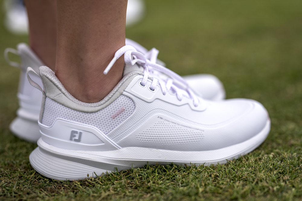 FootJoy heeft de Pro/SL opgebouwd rond een nieuwe Z-TEC-upper: een gelaagde constructie die gericht ondersteuning en flexibiliteit moet bieden. In de praktijk merk je dat vooral aan de stabiliteit van de schoen. Het bovenwerk voelt stevig waar nodig, maar beweegt mee waar het kan. Dat is knap, zeker als je bedenkt dat dit een van de lichtste golfschoenen op de markt is.