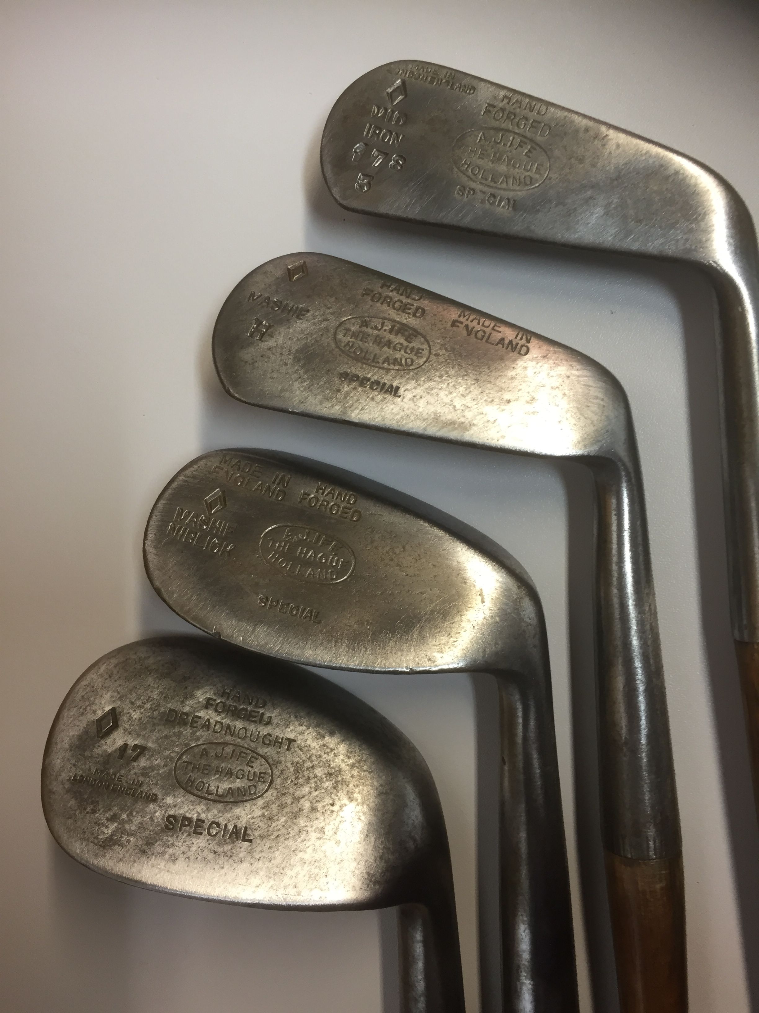 IJzers in de collecties van veel oudere Nederlandse golfclubs (Haagsche, Kennemer, De Pan en de Noordwijkse ) zijn meestal afkomstig van een paar fabrikanten: W. Winton (herkenbaar aan een diamantteken), J.B. Halley (schelpteken) , F.H. Ayres (kruisteken) en Spalding (anvilteken)