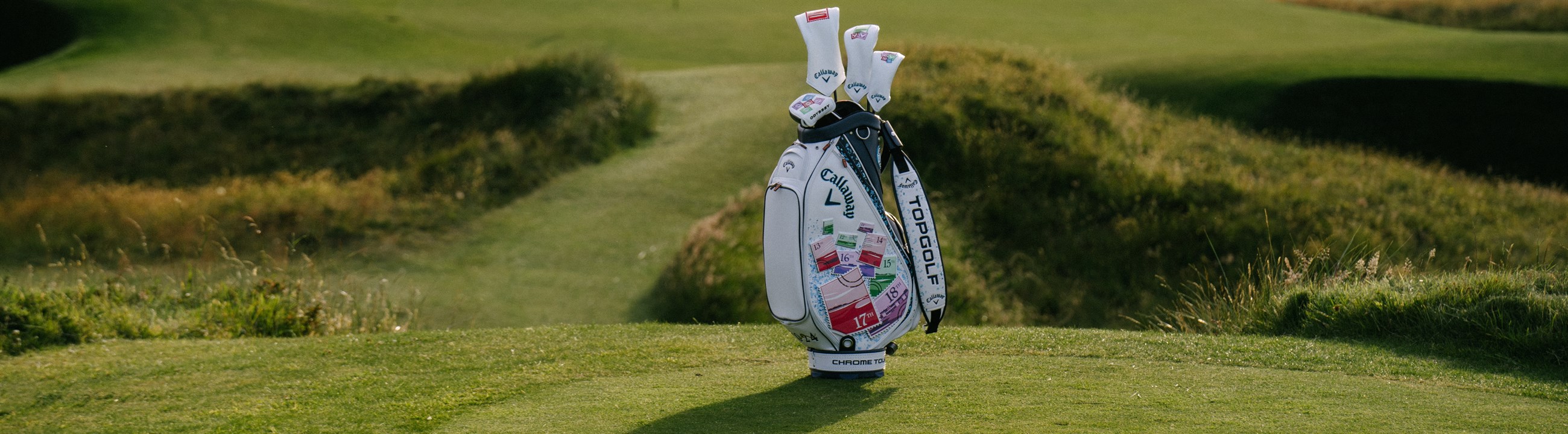 De bijzondere tas heeft een 'Postage Stamp'-ontwerp, als knipoog naar de kenmerkende 8e hole van Royal Troon, de baan waar de 152e editie van The Open werd gespeeld. Xander Schauffele gebruikte de tas op weg naar zijn historische overwinning.