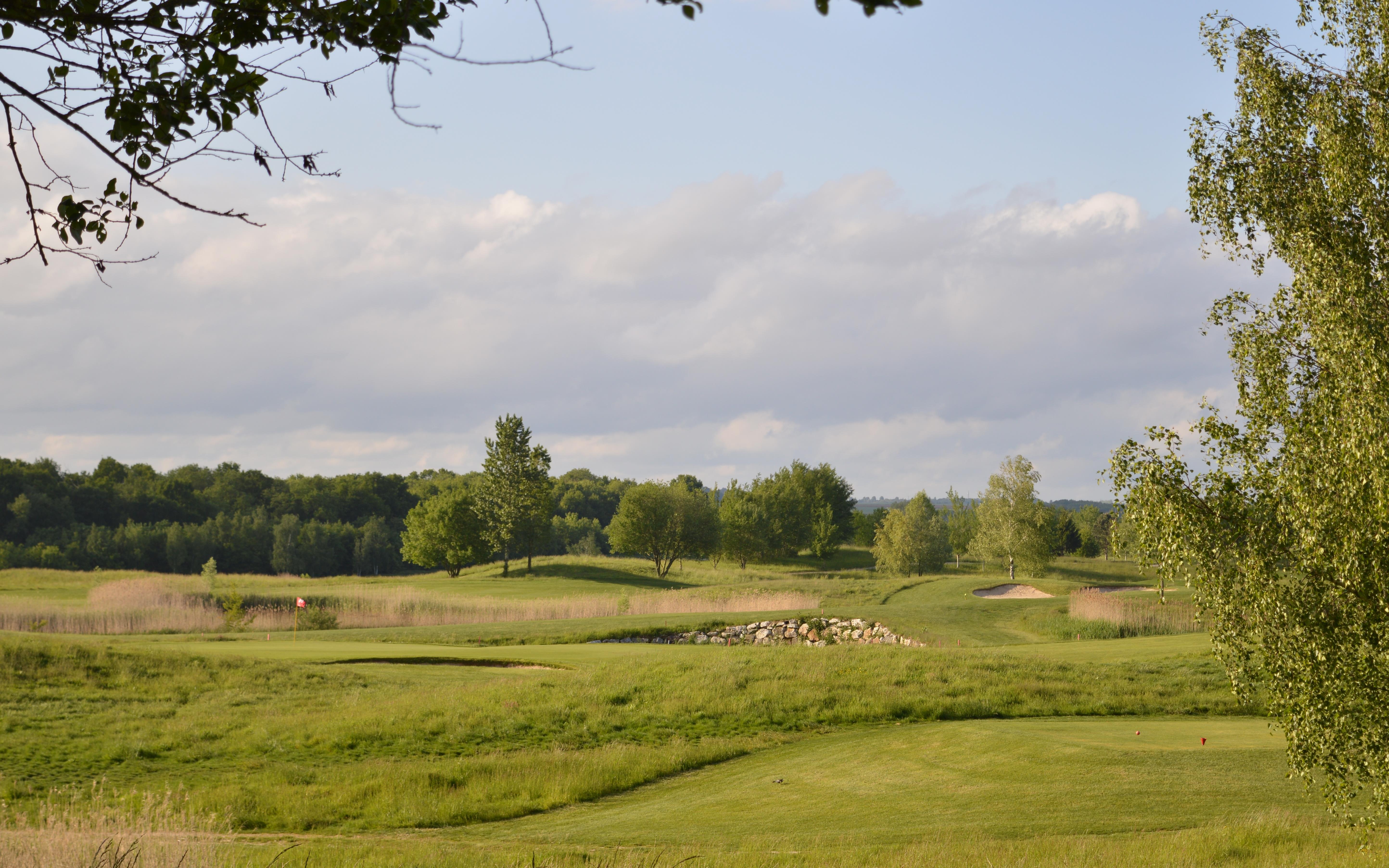 De volgende dag genieten we van het uitzicht vanuit onze huiskamer. De golfbaan Montpichet ligt er mooi bij op het land dat van oorsprong bij de boerderij hoort. Dat grond niet schaars is, bewijzen de brede fairways van de lichtglooiende baan en de prima aan te spelen greens. Maar onze aandacht gaat toch meer uit naar de andere baan, Vignoly. Deze is in 2009 geopend en de reviews zijn goed. De kinderen hebben de buggy’s inmiddels in de achtertuin geparkeerd, tassen erop en het dagje familiegolf kan beginnen. In het restaurant komen we Ruud tegen. Hij vertelt dat Crécy Golf Club ongeveer driehonderd leden heeft. Er worden veel wedstrijden gehouden en door een goede drainage is Vignoly het hele jaar bespeelbaar. Volgens Ruud is er niet echt een buggycultuur maar in ons drukke programma maken we graag gebruik van de karretjes. De eerste hole is een niet al te lange par-vier waar je de vlag niet ziet en je de juiste club moet kiezen. De green is, net zoals later blijkt bij alle greens, goed aan te spelen. De par-vijf tweede hole zegt veel over de baan en zijn architect: Palmer werkt graag met water en rotsblokken voor de afwerking. Er is veel keus in het coursemanagement. Je kunt veilig spelen of risico nemen en een gemiste fairway of green is geen probleem; je kunt goed herstellen. Zo is hole vijftien een korte par-vier met een dubbele fairway. Die kún je overslaan en voor de green gaan... Maar wat kan, lukt niet altijd. Nadat drie ballen in het water belanden, geven we het op. Wat een goeie matchplayhole! We keren terug naar het domaine en besluiten in het restaurant te eten. Het uitzicht op de baan is prachtig en de bediening vriendelijk. Het eten verdient meer aandacht: de risotto