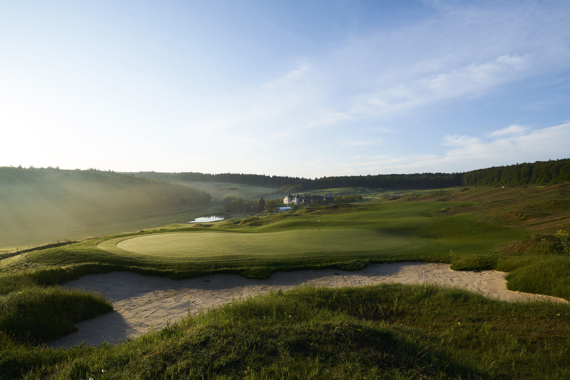 Bij aankomst vallen meteen drie dingen op. Hofgut Georgenthal ligt fraai in een klein dal, waardoor het geheel een compacte indruk maakt en het gevoel geeft van een stadion course. Door dit komvormige ontwerp is er flink wat hoogteverschil, met veel holes die schuin omhoog of naar beneden lopen. Daarnaast zien we alle karakteristieken die bij een typische linksbaan horen. Terwijl je midden in de Duitse natuur staat te golfen, zijn de uitdagingen dus van een Schotse of Ierse orde. Alleen de zee moet je er even bij denken.