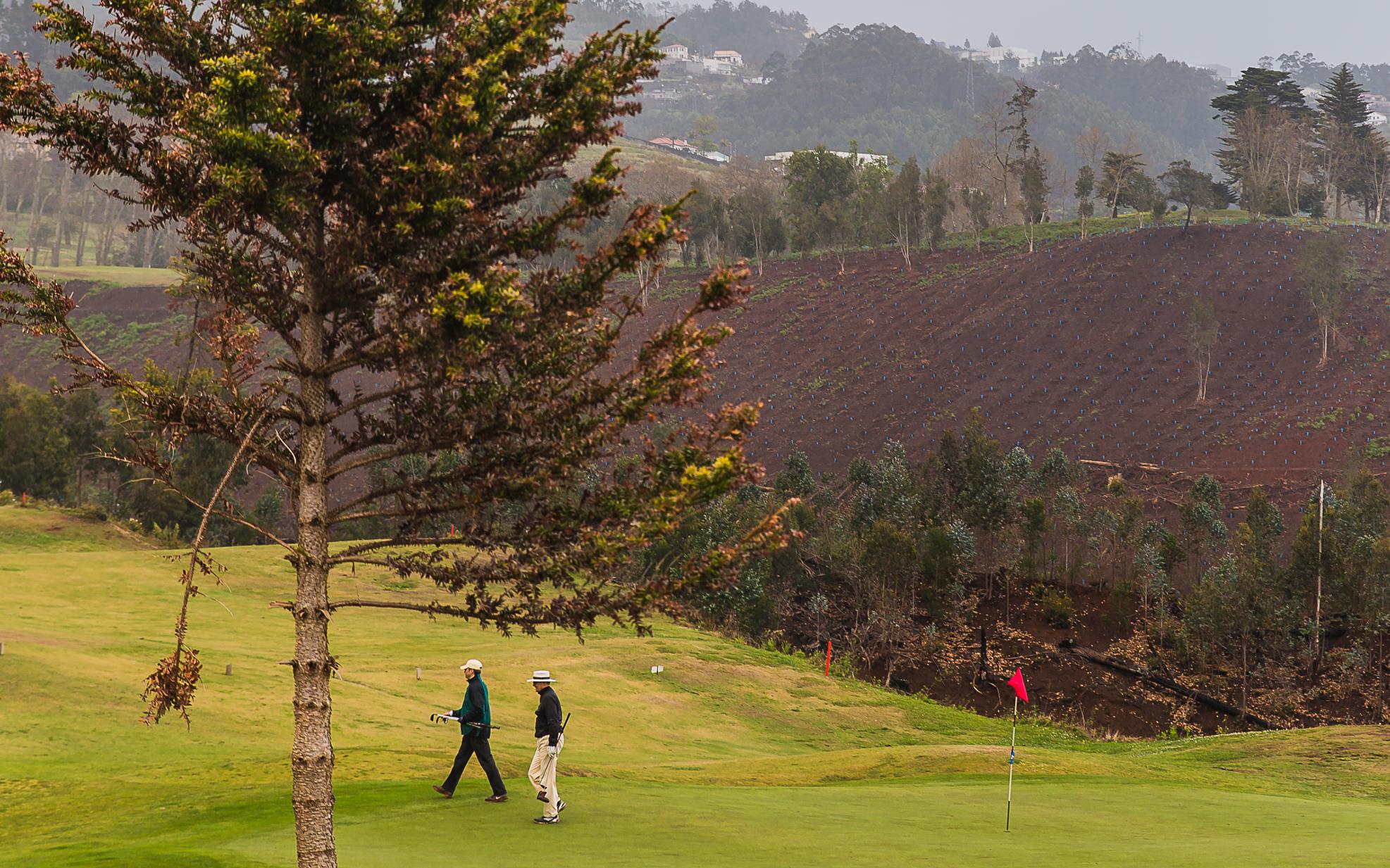 Op de baan ontmoeten we Michael Otto. Michael is een vriendelijke Duitser op pensioenleeftijd, die jarenlang salesmanager van Palheiro is geweest. Tegenwoordig doet hij het wat rustiger aan, maar nog altijd is hij nauw betrokken bij de club. Hij vertelt ons hoe de baan te kampen heeft gehad onder twee natuurverschijnselen. ‘In 2011 heeft er een brand gewoed die een groot deel van de bomen langs holes vier, vijftien en zestien heeft verwoest. Daarnaast hebben parasitaire nematoden (rondwormen) er voor gezorgd dat we 60,000 bomen hebben moeten kappen en dat heeft de baan een heel ander aanzicht gegeven.’ Celeste Ringertz, General Manager van hotel Casa Velha, voegt daar aan toe: ‘het enige voordeel is dat het de baan ook een heel ander uitzicht heeft gegeven. Waar de bomen voorheen een groot deel van het uitzicht ontnamen, kun je nu kilometers ver kijken.’
