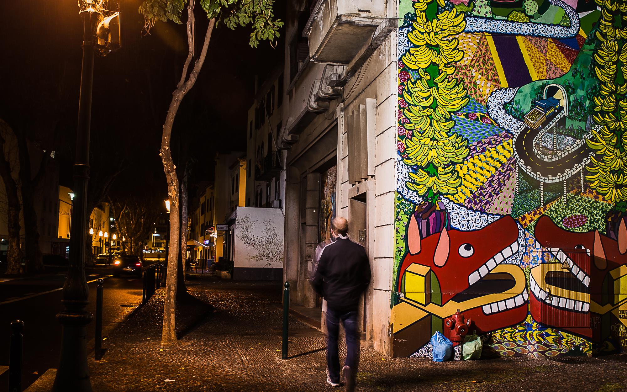 ‘s Avonds is het heerlijk om door het oude centrum (zona velha) te struinen en te genieten van de vele – moderne – beschilderingen op muren en deuren. Goed eten kan op veel verschillende plekken. Wij gingen naar het vrij moderne restaurant Santa Maria en genoten daar van heerlijk verse espada – de niet heel erg knappe zwarte degenvis – die de specialiteit van het eiland is. Geloof het of niet, maar hij is het lekkerste met banaan erbij. De avond sluit je af in een gezellig klein barretje waar ze poncha schenken. Wij deden dat bij Venda Velha, dat slechts enkele meters van Santa Maria zit. Poncha is de kleurrijke – en wat moderner ogende - variant op Madeira wijn. Barman Jacó vertelt enthousiast over de mix van aguardente (gedestilleerde alcohol van suikerriet), honing, suiker, citroen en vers vruchtensap die zelf kan worden gekozen. Wij hebben geen idee wat lekker is, dus zet hij een rijtje voor ons neer om te proeven. Na een de eerste slokken zijn we overtuigd, poncha is ons nieuwe favoriete drankje en naar Madeira gaan we graag nog eens terug.