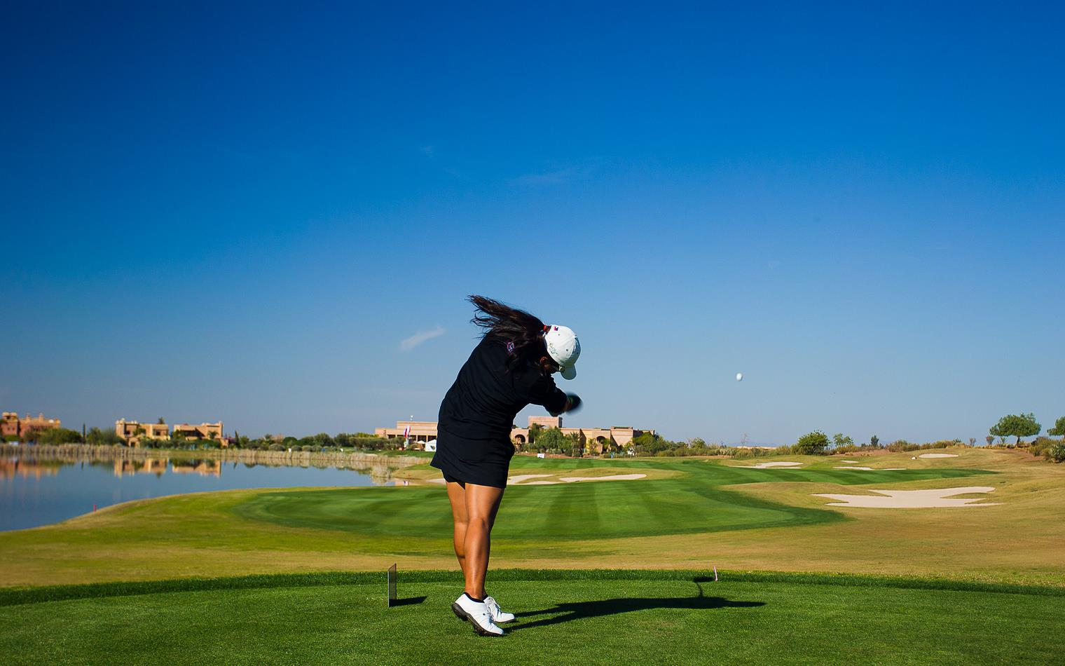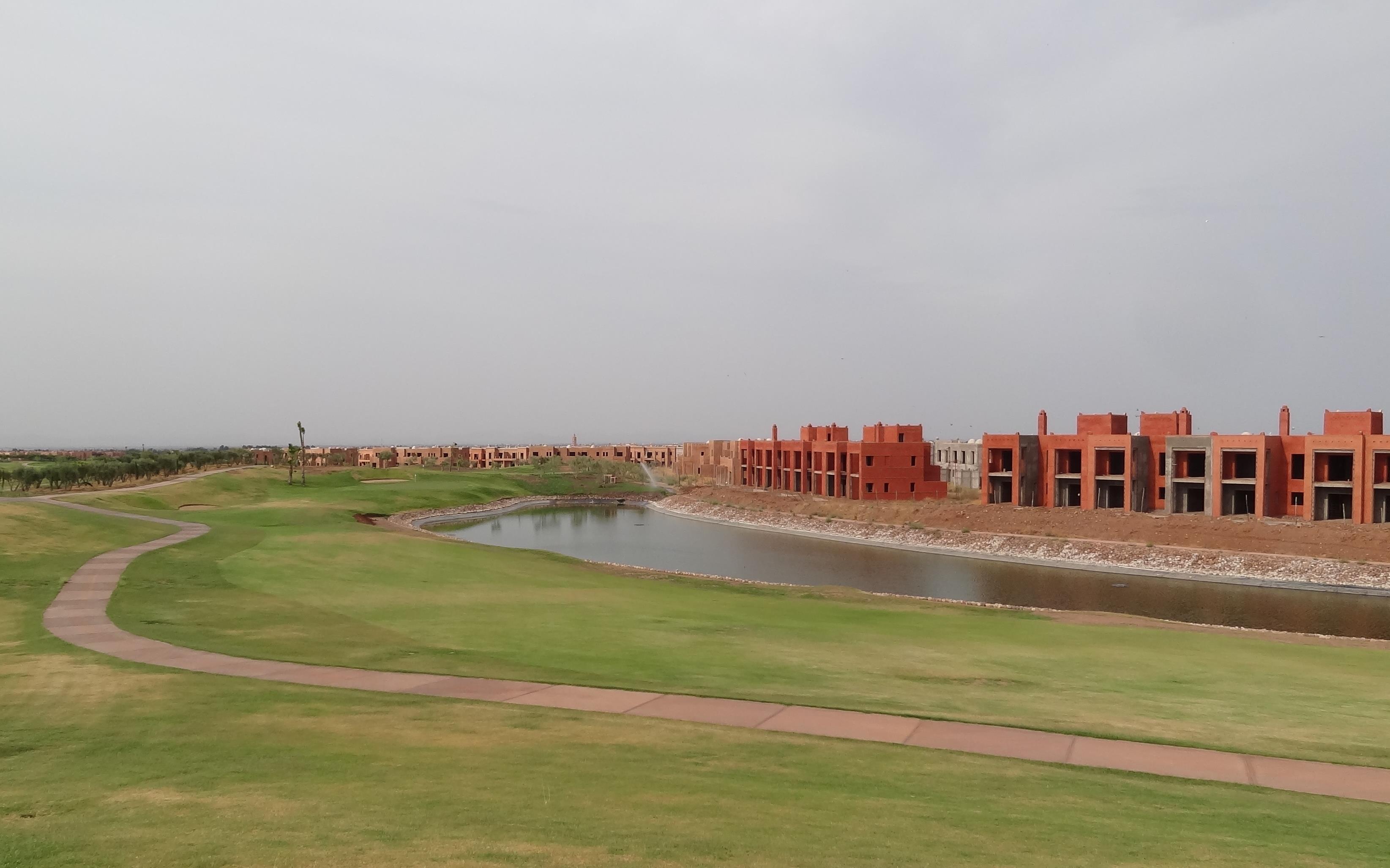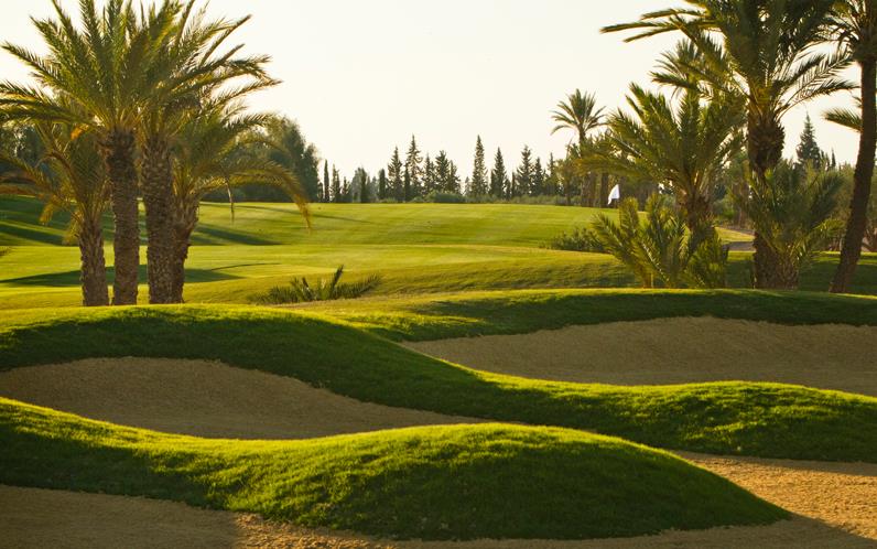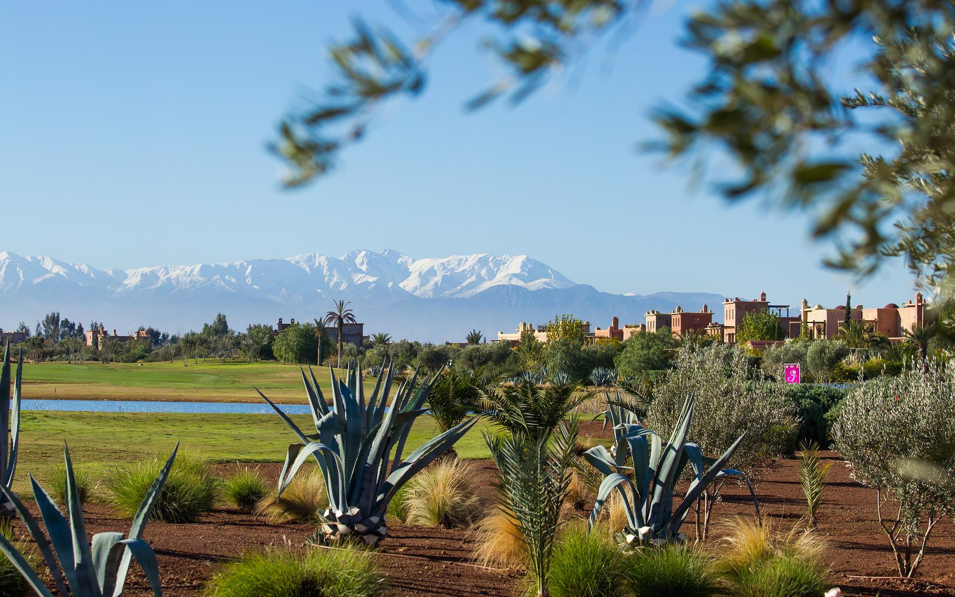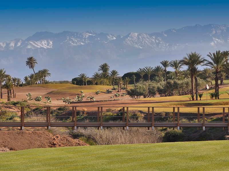 Een van de golfbanen die volgens insiders in financieel zwaar weer verkeert, is Samanah. Met het golf op deze course (signatuur Jack Nicklaus) heeft dat niets te maken, maar wel met het aangrenzende onroerend goed dat maar niet verkocht schijnt te raken. “De huizen zijn wel degelijk verkocht”, corrigeert caddiemaster Rachid streng. “Ze zijn alleen nog niet bewoond.” Deze typische desert course ligt op een steenworp afstand van Domaine Royal Palm. Om er te komen moet je de stadsgrenzen van Marrakech passeren en zie je kort het kale, maar indrukwekkende achterland van de Marokkaanse oase. Op de baan markeren witte stenen een afstand van 135 meter naar pin (150 yards) en stapeltjes stenen tonen de grens tussen baan en out of bounce. De holes zijn licht geonduleerd en worden opgesierd door verzorgde witte bunkers. De drivingrange en het eerste deel van de omloop liggen er heel droog bij. Echt hinderlijk is dat niet. Ik golf immers in de woestijn. Bij de green van hole zes zie ik een onverwachte vijver. Een van de drie, zo ontdek ik later. Alleen bij de approach naar de zestiende green en bij de afslag van de par-drie zeventiende zijn die waterhindernissen echt in het spel. Bij hole negen doemt er opeens een soort spookstad op van leegstaande (“maar wel verkochte”) villa’s, die even verder in bewoonde staat Samanah juist van extra allure voorzien. Al met al is Samanah geen moeilijke baan, tenminste als je de bunkers kunt omzeilen en de lijnen op de verraderlijke greens goed leest. Jammer dat het leegstaande vastgoed soms een wat onbestemd gevoel geeft, gelukkig rest altijd nog het magnifieke uitzicht over het Atlasgebergte en de comfortabele begroeting van het schitterende, bijna koloniaal aandoende clubhuis.