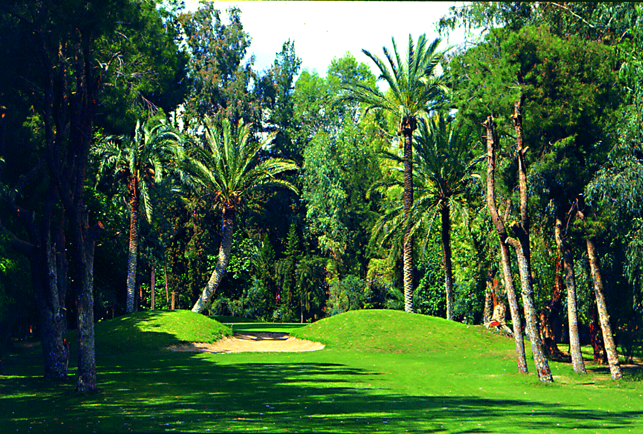 Vlak naast de golfbanen van Al Maaden en Amelkis liggen 27 holes met een koninklijke historie, Royal Golf de Marrakech. Marc Tremel, de Frans-Canadese directeur: “Onze baan is ruim negentig jaar oud en eigendom van koning Mohammed VI. Nee, de koning speelt zelf niet. Zijn broer komt hier wel.” Wat direct opvalt, is dat er bij de entree een tijdelijk onderkomen van portocabins is neergezet. Tremel: “In september beginnen we met de bouw van een nieuw clubhuis. Bovendien hebben we een budget om de faciliteiten uit te breiden en op te knappen.” Royal Marrakech heeft veel weg van een parkbaan, maar dan wel een park met onder meer palm-, olijf- en sinaasappelbomen. Het voordeel hiervan is dat je onderweg veel plekken met schaduw tegenkomt. Het nadeel is dat de vegetatie de wind tegenhoudt. Alleen het rijden in de buggy zorgt voor verkoeling. Wel jammer dat die carts over een traditionele, niet elektrische motor beschikken en daarom ouderwets lawaaierig over de fairways sjezen. Royal Marrakech is een eenvoudig speelbare, vlakke baan zonder verrassingen en uitdagingen. De enige hole die bijblijft, is de par-drie negende (rood) waarbij je over een opvallend gat midden in een heuveltje moet slaan om de green te bereiken. Aan alles is te zien dat deze baan hoognodig aan de opknapbeurt toe is. Zelfs de ballenmachine wacht op betere tijden en weigert dienst. Het baanpersoneel is snel ter plekke, maar ook zij hebben geen invloed op de drie euro (!) die een ballenmuntje kost. Dat is meer dan een cola en flesje water op het terras van het tijdelijke clubhuis. Of zijn hang ik nu te veel de zunige Hollander uit?