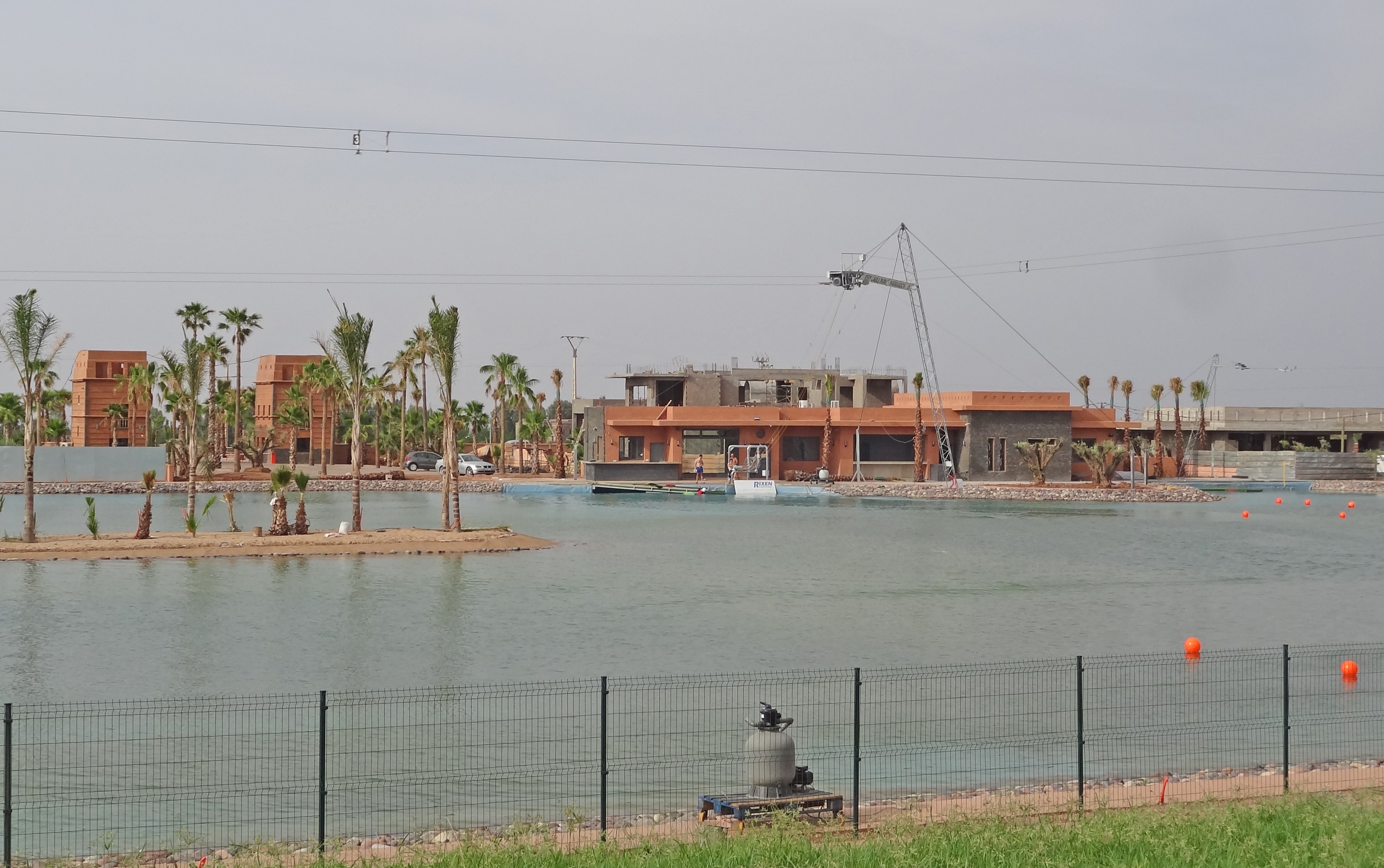 Met gepaste trots laat golfdirecteur Saad Naimi de contouren van zijn gloednieuwe Palm Golf Ourika zien. “Wat er ook gebeurt”, zo zegt hij hoopvol, “we gaan officieel open in september.” Dat is dan wel een jaar later dan gepland. Tijdens de rondleiding wordt duidelijk dat er tot die tijd nog veel werk moet worden verzet; van het storten van besteld zand in de bunkers en waste areas, het plaatsen van keien langs de oevers van de vijvers, tot de afwerking van de oefenfaciliteiten en de bouw van het clubhuis. Dit ambitieuze project, beheerd door de Troon-groep (tevens eigenaar van Palm Golf Club Marrakech, voorheen Palmeira), doet soms denken aan een stadium course waarbij de hele baan wordt omringd door luxe huizen en grote villa’s. In het park wordt overigens hard gewerkt aan een spectaculaire wakeboardvijver met een aangrenzende beachclub en zwembad. Grappig om te zien is dat sommige, speciaal uitgenodigde gasten al een oefenronde mogen spelen, terwijl de shovels nog midden op de fairway staan en de teeboxen nog moeten worden afgewerkt. Uit de gevarieerde lay-out van de baan en de zorg die naar het ouderhoud uitgaat, mag worden geconcludeerd dat dit een ware aanwinst voor golfstad Marrakech gaat worden. Leuk detail, Ourika kan alleen worden bespeeld met buggy. Er staan er inmiddels zestig opgesteld, alle voorzien van een werkend en state-of-the-art GPS-systeem voor afstandsbepaling, digitale scores en routing. Inclusief fraaie fly-overs voor iedere hole.