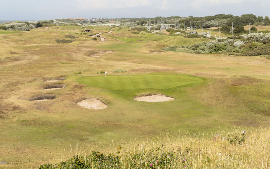 We zetten koers richting België. In het begin van de twintigste eeuw was het Koning Leopold II die meer Engelse toeristen naar de Belgische kust wilde trekken. In deze periode van welvaart, ook wel bekend als La Belle Époque, mocht een golfbaan niet ontbreken en in 1903 werd Royal Ostend Golf Club geopend. We arriveren in een enorme plensbui en onder de luifel van het statige, witte clubhuis zoeken golfers beschutting. Het onderkomen heeft het zwaar gehad; in twee oorlogen is het even vaak verwoest als opgebouwd maar de klassieke elementen zijn behouden. Gelukkig waait de bui over, de harde wind blijft. “Vandaag gaan jullie de baan ervaren zoals het hoort. De lengte is niet zozeer het probleem, de wind en een kleine honderd bunkers maken het uitdagend”, aldus president Yves Dewitte die er nog even op wijst dat de Royal de enige linkscourse van België is.