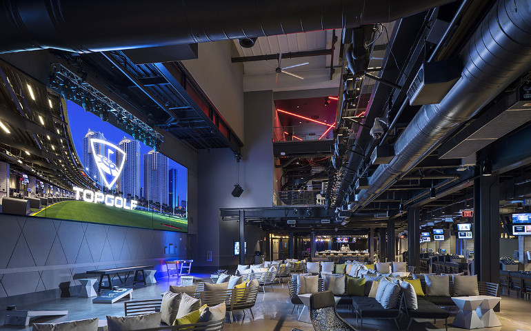 “We denken dat er ruimte is voor honderd locaties in Amerika en nog eens honderd in de rest van de wereld”, zegt Erik Anderson, de CEO van Topgolf Entertainment Group, het moederbedrijf dat buiten Amerika de pijlen richt op Groot-Brittannië, Australië, China, Zuid-Korea en Canada. Nederland zal nog even moeten wachten. In 2009 kocht Anderson samen met een aantal investeerders de technologie van Dave en Steve Joliffe. De Britse tweelingbroers ontwikkelden een manier om een microchip in een bal te verwerken. Geen makkelijke klus gezien de hoge temperatuur waarbij een golfbal geproduceerd wordt. Het patent dat de broers vastlegden, werd vervolgens vertaald naar een compleet drivingrangeconcept (‘Top’ in Topgolf staat oorspronkelijk voor Target Oriented Practice) en in 2000 werden de eerste twee vestigingen in Engeland geopend. De Amerikanen roken hun kans en brachten Topgolf naar Washington. Met iets meer muziek en flatscreens was het concept een doorslaand succes en zag ook Callaway potentie. De golfgigant kocht in 2006 een aandeel van twintig procent in het entertainmentbedrijf. Geen slechte investering in een bedrijf met cijfers waar de gemiddelde golfbaanmanager alleen maar van kan dromen. De PGA Tour zag ook de potentie en werkt sinds dit jaar intensief samen met Topgolf. Wat het de golfsport precies oplevert is onduidelijk. Feit is dat veel nieuwe mensen in aanraking komen met de sport en dat golf en plezier wél goed samengaan.